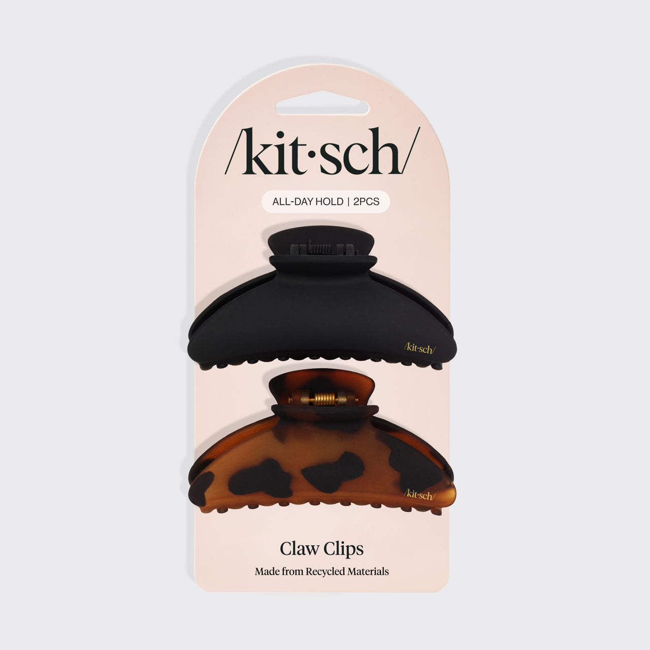 Black & Tort Curved Claw Clips 2pc Set – Medium